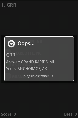 AIRPORT CODES - USA & CANADA quizzes, flash cards, and a dictionary of over 220 Airport codes makes the perfect study partner. This handy Android app from Digital Applications keeps your user interface simple and straightforward; the only complex aspect of this app is the content itself. Challenge your knowledge with multiple choice quizzes which show you the correct answer if you miss a question. Research terms you don't know with the specialized dictionary. Study for upcoming tests and master your Airport Codes knowledge with term-by-term flash cards. The AIRPORT CODES - USA & CANADA Quiz (Flash Cards & Dictionary), made for students on the go with Android phones, applies a simple, easy-to-use structure to a particularly complicated subject.
