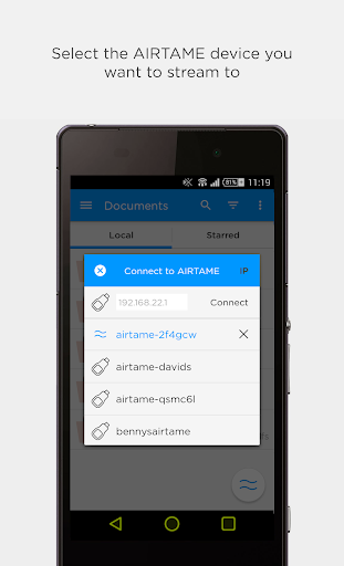 Wirelessly send local content from your devices (phone / tablet) to any AIRTAME* connected monitor (TV / projector).