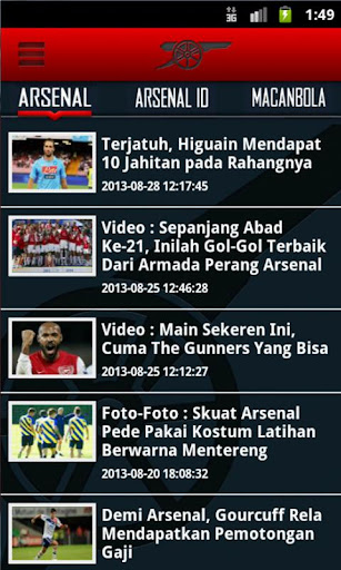 Kini hadir aplikasi smartphone Android untuk kamu pecinta klub sepakbola asal Inggris, Arsenal FC, Dapatkan informasi terkini seputar klub kesayanganmu, berita terbaru, Jadwal pertandingan, live score, sampai informasi seputar komunitas Arsenal Indonesia Supporter (AIS). Tidak ketinggalan juga kuis berhadiah tiap minggunya selama musim sepakbola berlangsung.