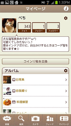 お気に入りの写真にイイネやコメントができて、気になるお友達をフォローしよう。お友達がくれたイイネやコメント、誰かがあなたをフォローしたときにお知らせが届く♪♪フォローした友達の写真はタイムラインでらくらく見れる。お気に入りの写真は、mixi(ミクシィ), Facebook(フェイスブック), twitter(ツイッター)などに簡単シェア
