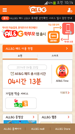 ★ 학부모님들이 자녀의 ALL&G(올앤지) 패드 사용현황을 휴대폰으로 확인하고 제어할 수 있는 앱