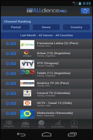 ALLdience(TM) PRO is an application developed for subscribers of DTV Ratings service. It provides a ranker of the most watched programs and channels in Latin America, including Argentina, Chile, Colombia, Peru, Puerto Rico, Uruguay and Venezuela. More countries to be added soon!