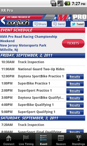 Now, with native Twitter functionality and Facebook integration, fans can share the experience with their friends without having to miss a second of racing action. The improved Connect screen features up-to-the-minute news headlines and now includes teasers for news articles and tabs with integrated feeds from AMA Pro Road Racing's social media sites on Facebook and Twitter.