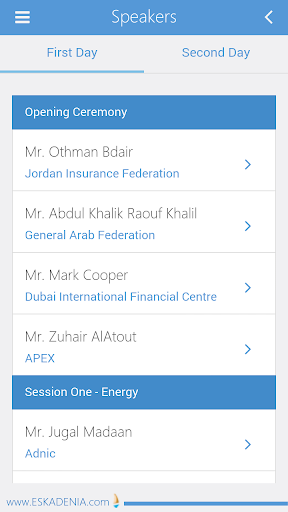 The application is powered by ESKADENIA Software and designed as the official Mobile App for the 2nd Apex Insurance Forum that will be held on the 14th & 15th of May, 2014 in Grand Hyatt Amman – Jordan