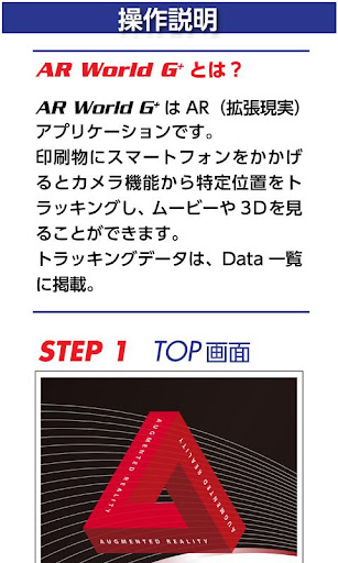 印刷紙媒体(新聞紙面、雑誌、カタログ、広告、企業ロゴ、名刺、ハガキ、DM、チラシ、ポスターなど)とAR(拡張現実)機能を利用して、本アプリーケーションでしか見ることの出来ないコンテンツ(動画・3Dなど)の情報を表示し、印刷紙媒体とWebの世界を結びづけを体験して下さい。