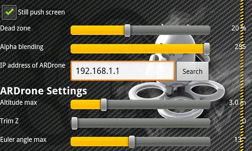 Pilot your ARDrone (from Parrot) with your Android device ! Tested with firmware 1.1.3, 1.3.3, 1.4.7, 1.5.1, 1.6.6 & 1.7.4