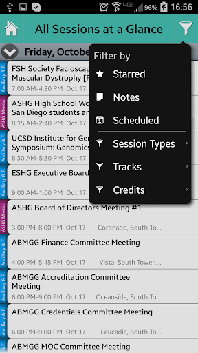 The American Society of Human Genetics Annual Meeting is held each fall and attracts over 6,500 scientific attendees, plus over 200 exhibiting companies, which makes it the world's largest gathering of human genetic professionals. Highlights include invited, plenary, platform, and poster sessions as well as education/trainee workshops, career opportunities, award presentations, networking events, and more. ASHG members and leading scientists from around the world are selected to present their most recent research findings. Registration includes access to hundreds of presentations and to online webcast recordings of selected sessions as well as admission to exhibits on the latest laboratory equipment, products, publications, and software. The ASHG 64th Annual Meeting is being held at the San Diego Convention Center in San Diego, CA from October 18-22, 2014. Visit www.ashg.org/2014meeting for additional information. App features include: • Native app: No wifi connection required to access the conference program, schedule or animated maps. • Now: Stay informed about hot issues, event program changes, your upcoming sessions and organizer messages. • Program: Browse the entire event program to build your personal schedule, bookmark sessions or speakers, or access session handouts as available. • Take notes and email them as part of your trip report for reference. • Exhibitors, Maps, related conference info and much more. • Disclaimer: Continued use of GPS running in the background can dramatically decrease battery life.