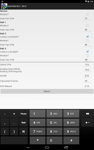 ASHRAE 62.2 2013 is an easy-to-use calculator that allows you to perform whole building ventilation requirements for residential buildings, including new and existing dwellings. It has the ability to create and save multiple building files and create PDF reports.
