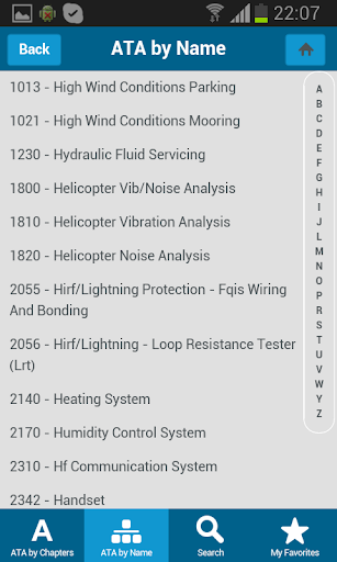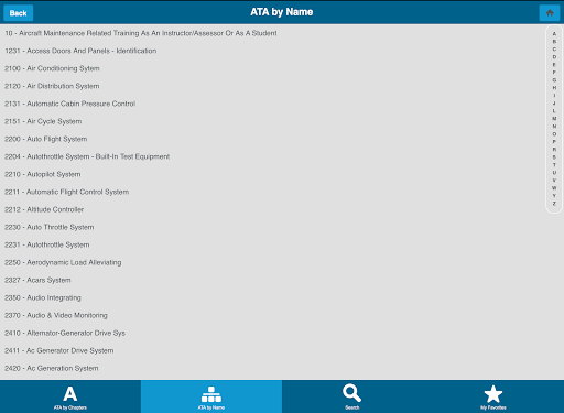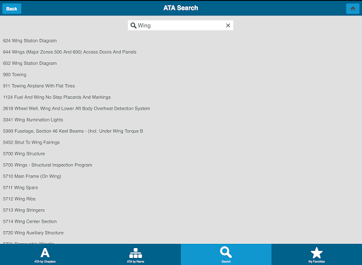 ATApp gives the user the ability to search through ATA Chapter or Name and lastly by a search feature.