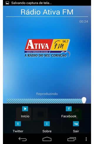 Agora você pode ouvir sua rádio preferida pelo celular, desde que tenha a tecnologia Android. Com esse recurso você pode ouvir rádio ao vivo com qualidade HD na palma da sua mão. com ele você pode fazer pedidos musicais, ter aceso fácil ao Twitter e Facebook da Rádio!