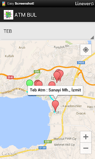 Uygulamada google maps ve gps kullanılmış , kullanıcıya bulunduğu şehri hiç bilmese bile bir işi olduğu zaman istediği ATM bulma imkanı sunulmuştur.Kullanıcı bulunduğu konumu haritadan takip edebilir,yakın çevresinde bulunan ATM'ler hakkında bilgi alabilir.