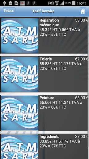 L'application "ATM" vous offre la possibilité de consulter toutes les infos utiles du garagiste (Tarifs, prestations, avis…) mais aussi de recevoir leurs dernières News ou Flyers sous forme de notifications Push.