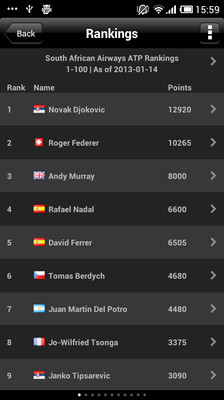 Follow your favourite professional tennis players and tournaments in real-time throughout the season, including select ATP Challenger events.