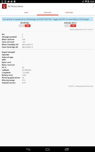 Along with your phone's data (battery level, bytes consumed, etc...), the Android application sends some "demo" data to the server.