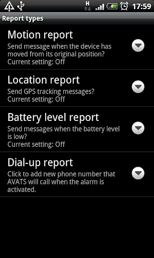 Android Vehicle Anti-Theft System (AVATS) is an application that alerts you if someone tries to steal or move your vehicle. Simply place/hide your phone under the seat of your motorcycle or car, then enable the alarm. If motion is detected, the alarm will activate and alerts/reports will be sent to you instantly by SMS, e-mail and/or by calling a secondary phone of your choice. The application uses your phone's accelerometer to detect motion. With this technique it typically only takes a few seconds for the application to alert you (depending on the quality of service of your network provider).