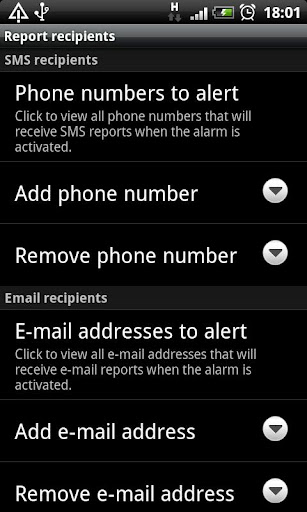 The application can be controlled remotely to enable/disable the alarm using SMS messaging using a secondary phone. There is also a remote control application, AVATS Remote, that can be downloaded from Android Market that allows you to control the alarm by sending messages over the Internet (or by SMS messaging).