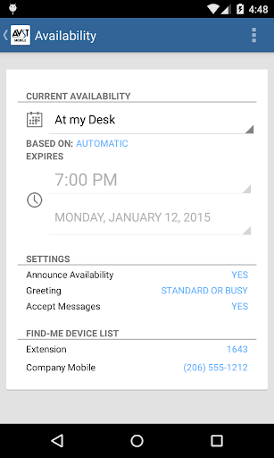 Place, receive, and manage your business calls, all while protecting your mobile number. With AVST Mobile, users can boost personal productivity while on the move through visual call screening, inbound and outbound dialing with mobile number protection, single number reachability, visual access to enterprise voicemail, location-based services to optimize call routing and settings management. Imagine carrying one device to manage both your business and personal communications. AVST Mobile client is one of the powerful features of Atom™.
