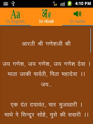 Free OFFLINE aarti collection with Audio. Aartis are the verses or sonnets (poetic or lyrical), in the introductory or in the form of praise of a God. Here we have provided you with aartis (devotional songs) of various Indian gods. Aartis are performed during the puja of these deities.