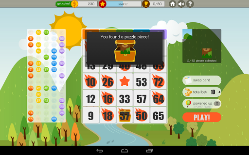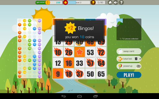 Gain levels, unlock pictures and use powerups to win more bingos! Collect additional coins every four hours and complete achievements to get even more. Hit the jackpot by getting multiple bingos on one card and win huge payouts!