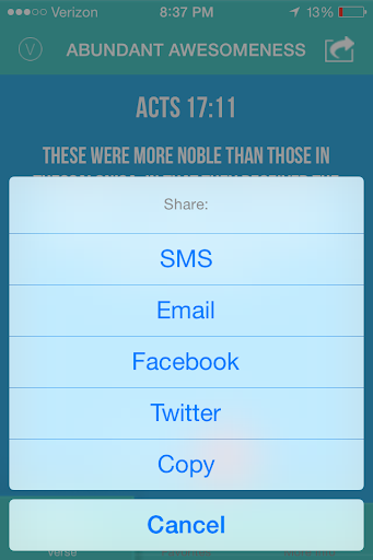 Features: This app is social media friendly as you can share your verses with your friends & family via SMS or Facebook & Twitter. The basic theme of the app is Christian and it is developed to offer maximum meditation of the Word of God.