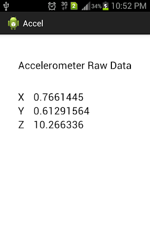 A very simple and straightforward app that reads the accelerometer raw data in m/s2