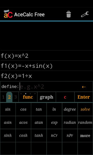 AceCalc is a scientific, financial, and graphing calculator. The calculator supports the following features: