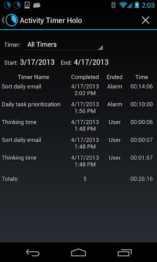 View your Active Timers one at a time or as a list to visually keep track of your tasks and activities. Pause your timer and then restart it later when you are back on task to make sure you complete your work. Use the timer log to track how much time you have spent on your tasks.
