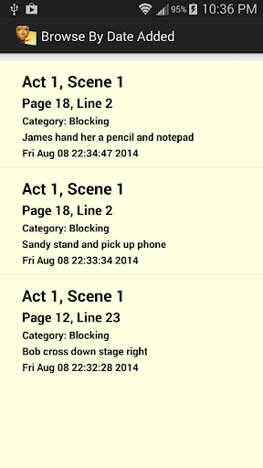Do you perform in live theater, TV, any other performance venue? If you are an actor rehearsing for a play, you know how difficult it is to keep and organize your notes from the director. Theater Rehearsal Notes is designed to solve that problem. Simply enter the notes and Theater Rehearsal Notes will keep them in order for you.