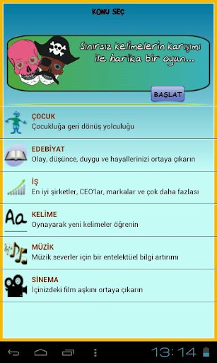 8 farklı konudan sevdiğinizi seçerek başlayabilir veya karışık konular ile oynayabilirsiniz.