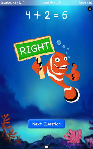 Learning Math has never been this fun! This innovative math app is for parents whose kids are in the first or second grade or in the age group 3 - 6. With this educational app, kids can learn addition and subtraction underwater with fishes. Small kids can easily practice their math skills - addition and subtraction - with this fun game. Children can master Math skills in an interesting and entertaining set up.