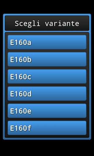 In caso esistano più varianti (es. 160a, 160b, …) l'applicazione chiederà di scegliere la variante desiderata. A questo punto vengono mostrati i possibili contenuti e gli utilizzi principali nell'industria alimentare.