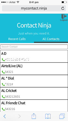 3. Your phone runs out of battery , and you have to call someone urgently. Access any phone and login to www.mycontact.ninja and get your address book and recent call logs to access the number.