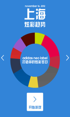 下载并安装后,通过APP步骤指引,进入炫酷游戏 ,和adidas NEO Label一起打造你的炫彩冬日,分享即可参加抽奖!