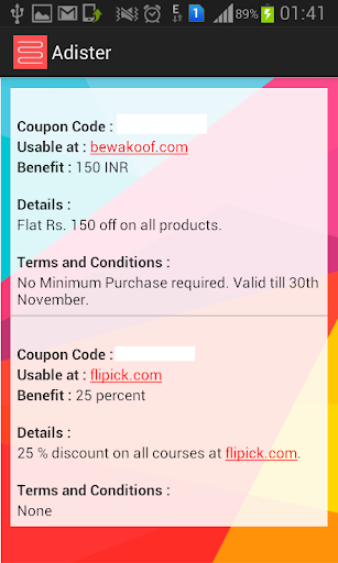 Adister App lets you get the amazing coupon codes of advertisers who have advertised on Adister notebooks.