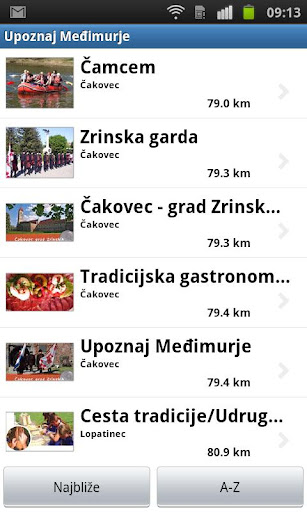 POI lokacije se prikazuju redoslijedom prema trenutnoj udaljenosti od korisnika (mogu se označiti i kao „favoriti“ što ih čini brzo dostupnima iz dodatnog izbornika ili pak selektirati po abecedi).