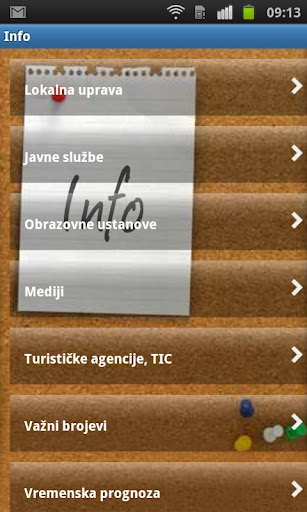 Osim informacija o POI lokacijama i Međimurju, Info izbornik sadrži podatke:
