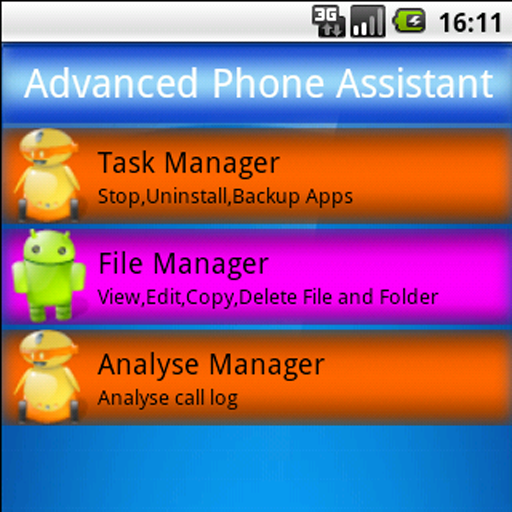 End applications,task, speed up phone, and save battery!! 1) Terminate Apps via App Detail Page 2) Shows Memory 3) Bulk Uninstall 4)Backup capabilities for saving and restoring applications 5)Shows Free SD Card MEM 6) Backup Apps to Email.7)File Manager 8)Call log analyse.