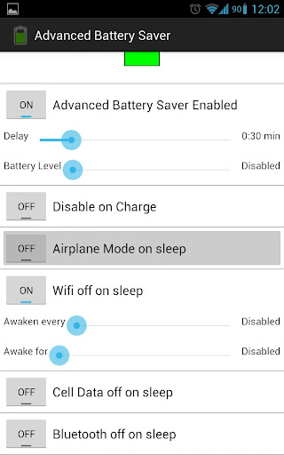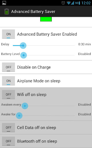 Advanced Battery Saver is an app that saves your battery usage by disabling certain phone features that you do not require when the screen is off.