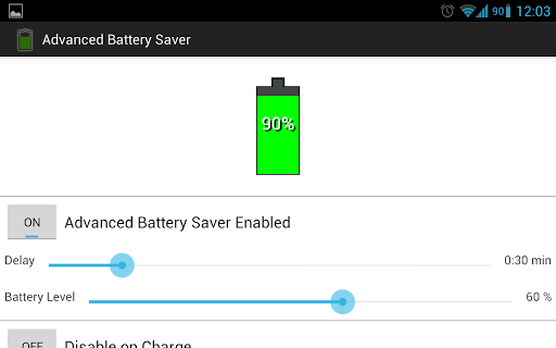 Advanced Battery Saver is an app that saves your battery usage by disabling certain phone features that you do not require when the screen is off.