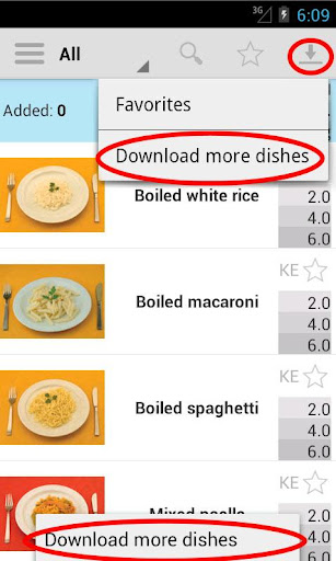 - Availability of large number of predefined sizes dish foods (including pictures) to create custom menus. They can be included in the calculation automatically.