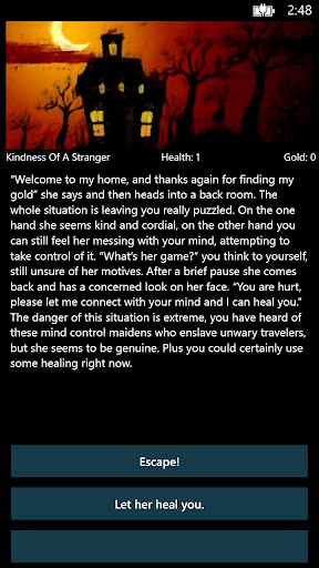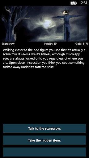 Embark on an adventure to retrieve the Golden Chalice in this choose your adventure game where you decide the outcome! Encounter goblins, ghouls, traps and other obstacles on your way to collect as much gold as you can and find the rare Golden Chalice! Simple touch controls and multiple paths to the ending add replay value.