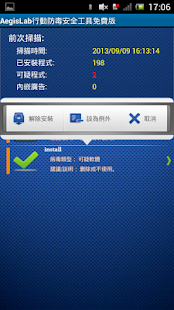 3. 針對掃瞄後的結果,提供滑動手勢控制方式。可以手指向右滑動即可解安裝該可疑APP;或是以手指向左 滑動將該APP設定為例外清單。
