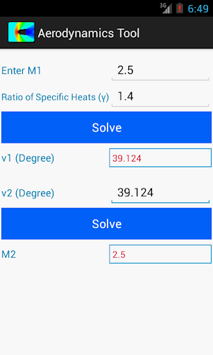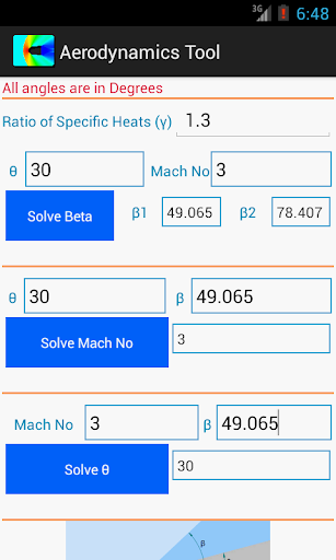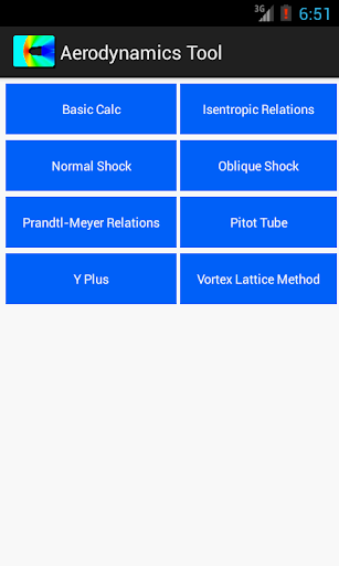 The app is handy tool for Aerodynamic Engineer and Academics. It contains Isentropic Relations, Normal Shock Relations, Oblique-Shock (Theta-Beta-Mach) Relations, Prandtl-Meyer Expansion wave Relations, Pitot Tube Velocity computations, Y Plus or Y+ calculations.