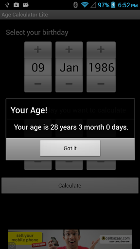 Age Calculator Lite is the simplest and lightest age calculator ever. This app can be very handy while you are filling up a formal application and you have to insert your age and situation like this. Key features: