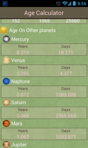 - Calculates Age according to other planets like, Mars, Jupiter Saturn etc