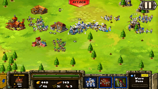 The Main House is the most important buildings in the game. Player have to protect from enemies attack and here advancement is researched. Beside the Main House, player have to build Barracks, Archery Range and Stables to create Footmen, Archer and Horsemen to protect Main House.