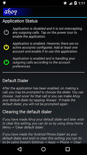 3. Dialer choosing option: While making a call, Ahoy can present you with an option to pick the dialer you want to use which can be Ahoy itself, the default phone dialer or even other services like Skype. You can always make Ahoy the default dialer by tapping on "Always". The default dialer setting can be cleared directly from the app.