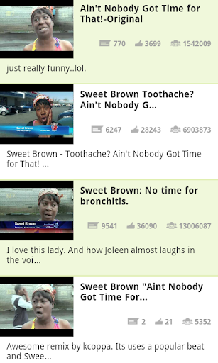 Everyone needs a laugh, but sometimes we are just too busy to find one. Well we have a solution. Install this trusty app on your Android (TM) device and save your self like 24 keystrokes. We will look up the latest YouTube (TM) videos for you so you don't have to search yourself! Ain't nobody got time for that!