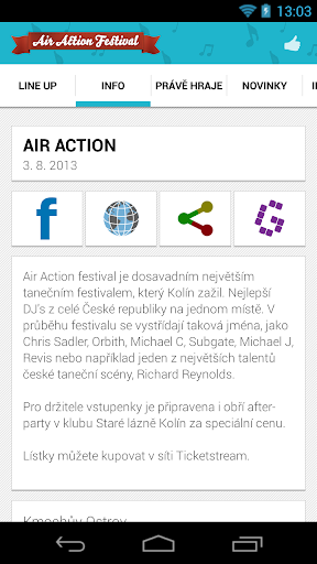 Air Action festival je dosavadním největším tanečním festivalem, který Kolín zažil. Nejlepší DJ's z celé České republiky na jednom místě. V průběhu festivalu se vystřídají taková jména, jako Chris Sadler, Orbith, Michael C, Subgate, Michael J, Revis nebo například jeden z největších talentů české taneční scény, Richard Reynolds.
