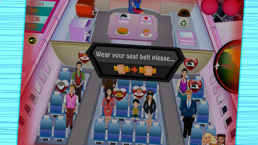 Airplane Service - our well-known girl Brittany changes her job again and she wants to work as a flight attendant now. So she has posted her resume in different airlines websites and her request was quickly satisfied. Brittany is going to the sky! She must serve passengers during the flight. For playing this game just follow steps in tutorial: look what you passengers want, bring them what they ask and take away the garbage. There could be a turbulence so Brittany won't be able to serve people during that moment.